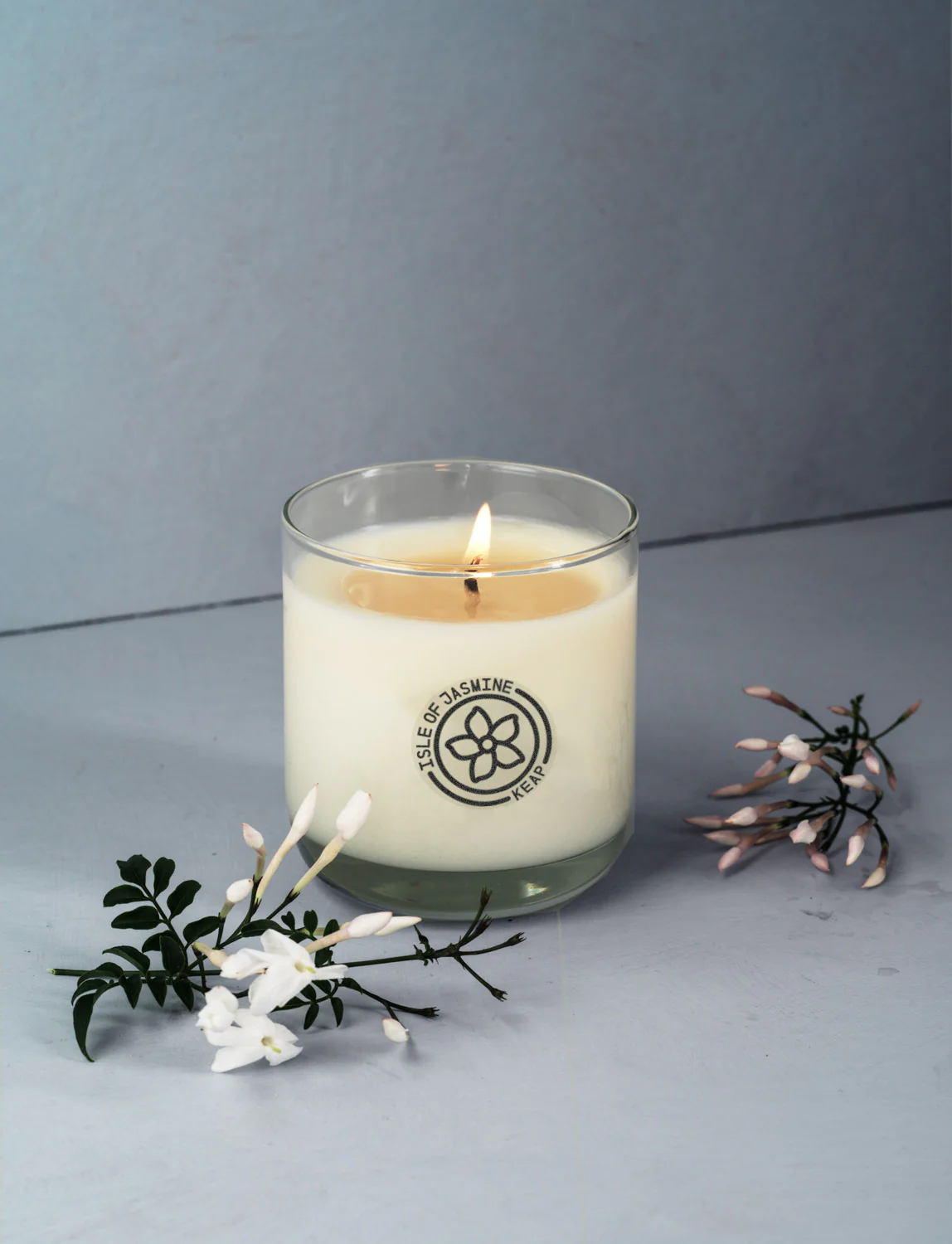 Candles made with coconut wax and nature-inspired scents in a reusable glass tumbler. 7.4oz / 45 hour burn time.